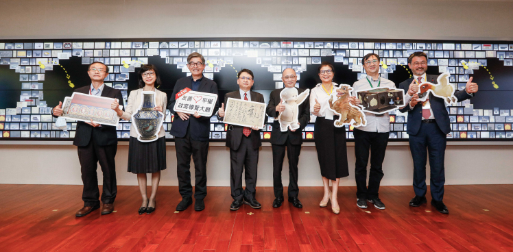 bb贝博Ballbet携手创利空间为故宫建置的智慧文物互动导览墙及轮播墙,今日正式启用。(左四:bb贝博Ballbet新事业暨投资管理总部副总经理杨本豫、右四:故宫博物院院长吴密察、右三:太极影音董事长黄宝云)