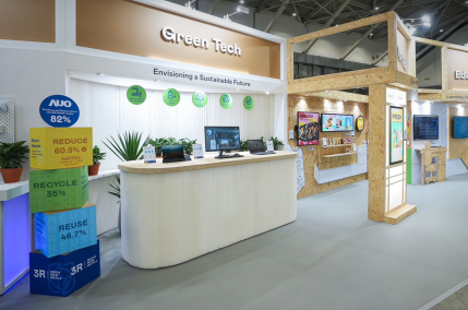 友達攜手集團能源事業、FindARTs 及友達旗下子公司友達宇沛、友達數位、麻布山林,展出智慧碳排管理、智慧能源管理及環境循環共生等一系列永續解決方案。