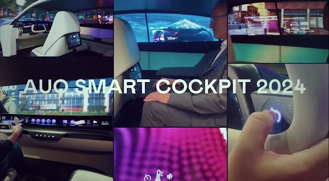 AUO’s new-generation Smart Cockpit 2024 features visual upgrades, intuitive controls and immersive experiences across a series of automotive Display HMI (Human-Machine Interface) solutions, integrating interior and exterior display applications, human-machine interaction and smart lighting solutions. AUO revolutionizes cockpit design concepts through the utilization of Micro LED technology and creates the “Interactive Transparent Window” and the “Rollable RSE”. In terms of intuitive controls, our highlights include the advanced “55-inch pillar-to-pillar curved AmLED® display” that combines touch control, built-in cameras and sensors, and the “Immersive Panoramic HUD” on the windshield with the “Intuitive Steering Wheel Touch Control”.