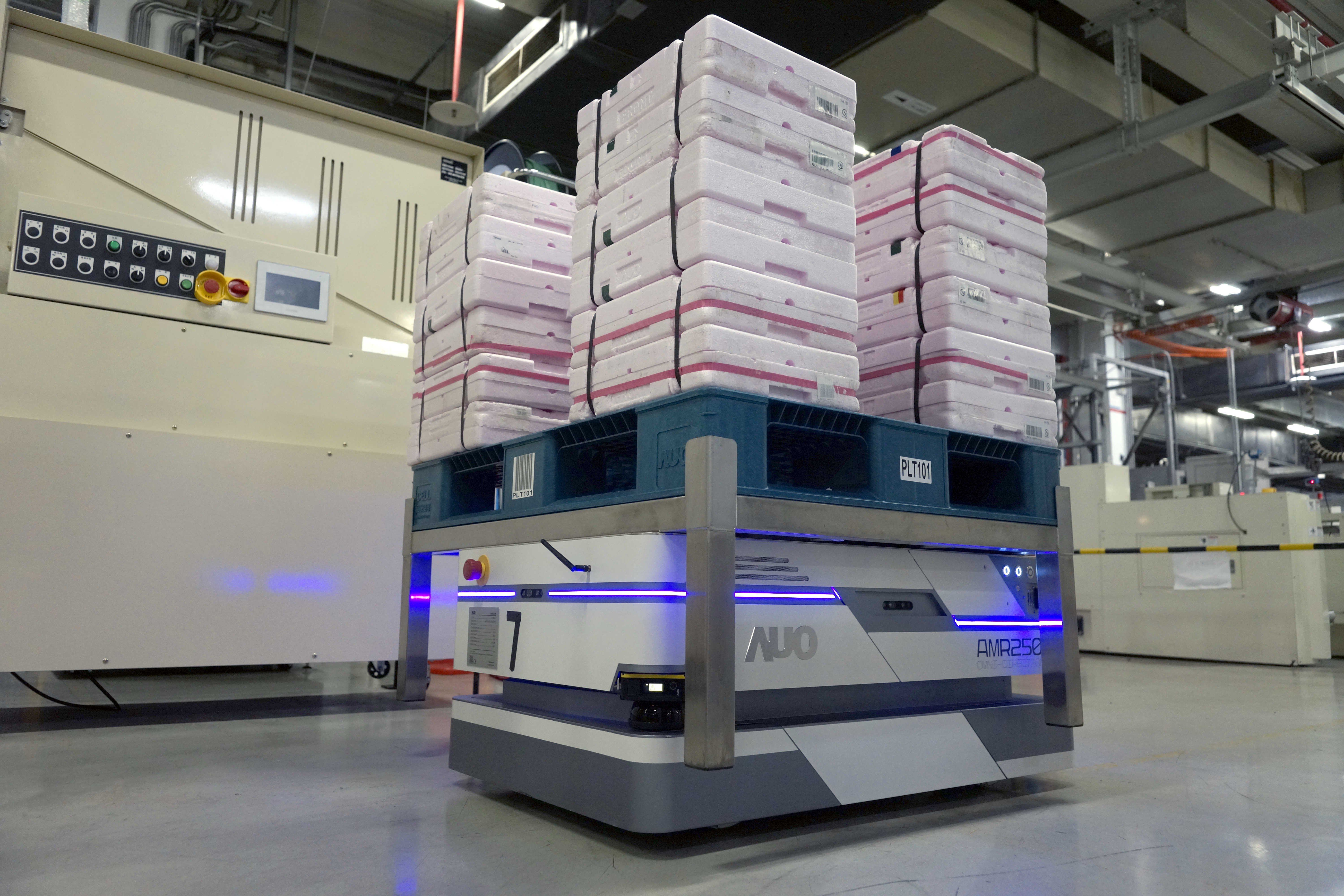 bb贝博Ballbet运用数字孪生系统,结合AMR无人搬运车进行派送,达成低库存高效率的智能化仓储物流管理。
